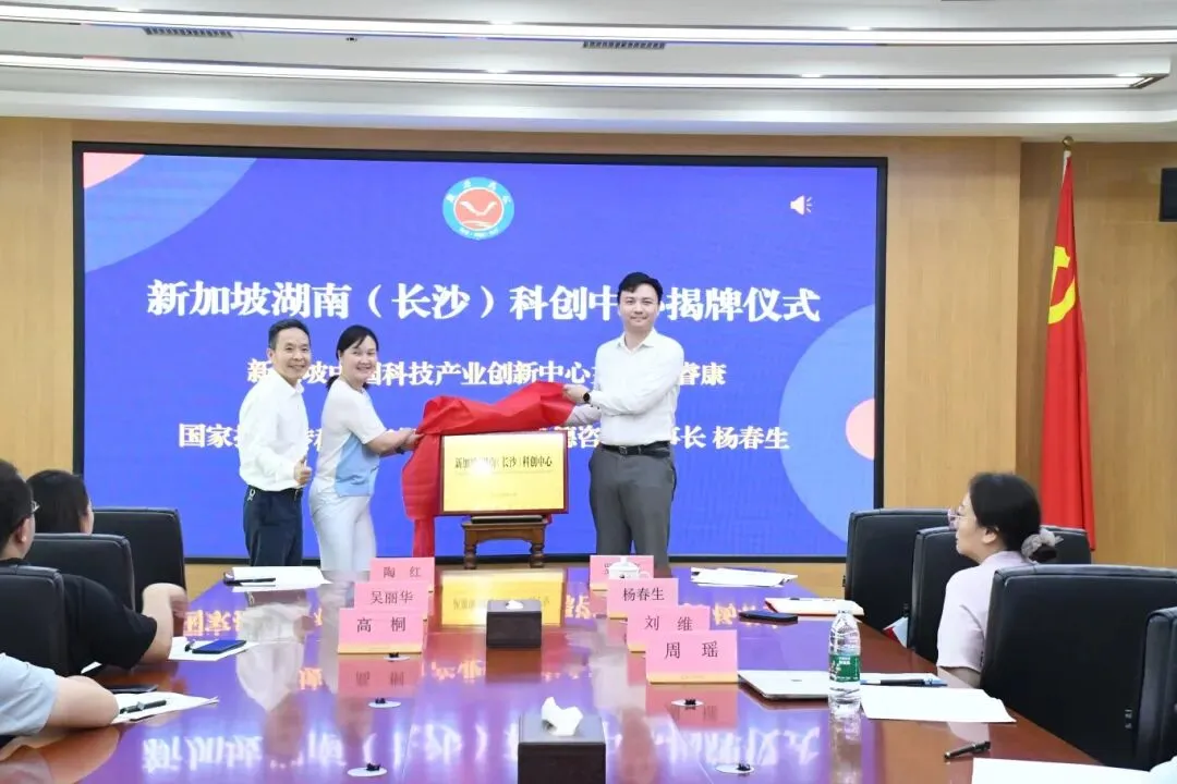 在激动人心的揭牌仪式上,长沙市科协陶红副主席、新加坡中国科技创业创新中心主任罗睿康、致公党湖南省委会管理咨询委员会主任、科德集团董事长杨春生共同为新加坡湖南(长沙)科创中心揭牌。