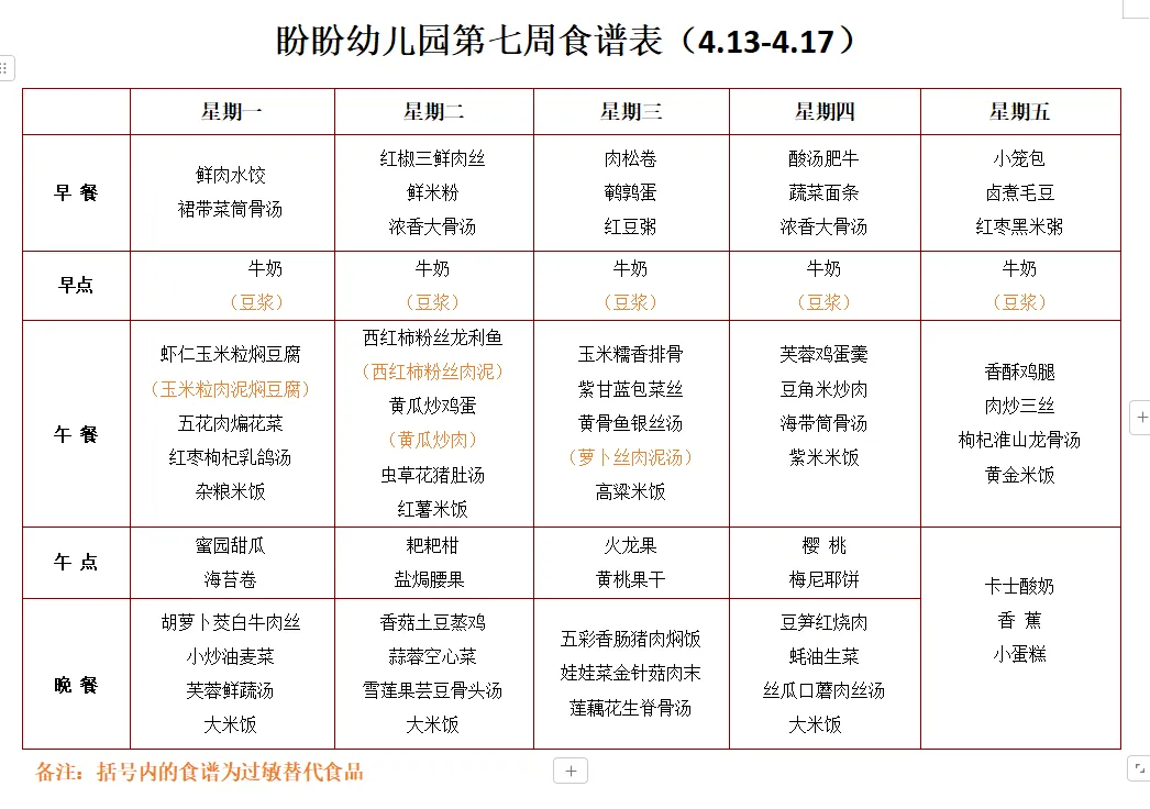 【长沙县特立教育集团】第263期 星沙街道盼盼幼儿园2026年上学期一周营养食谱