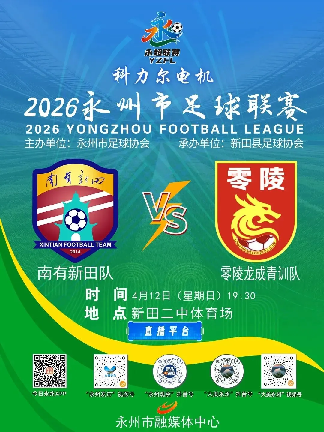 科力尔电机2026年永州市足球联赛第四轮赛程公布