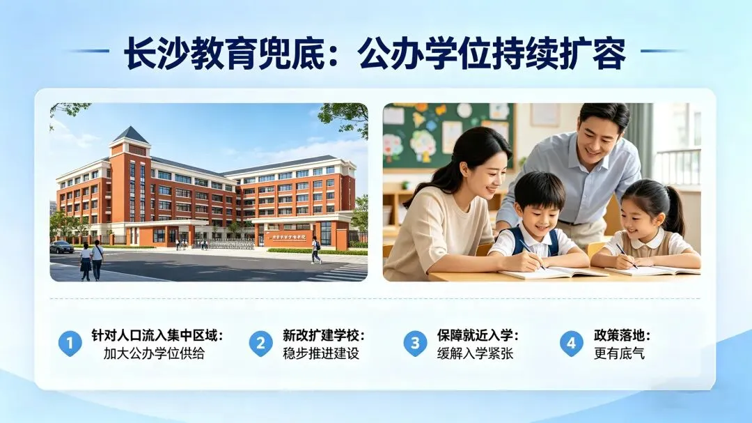 针对人口流入集中区域,长沙将持续加大公办学位供给,新改扩建学校稳步推进,全力保障孩子就近入学,从根源上缓解入学紧张,让政策落地更有底气。