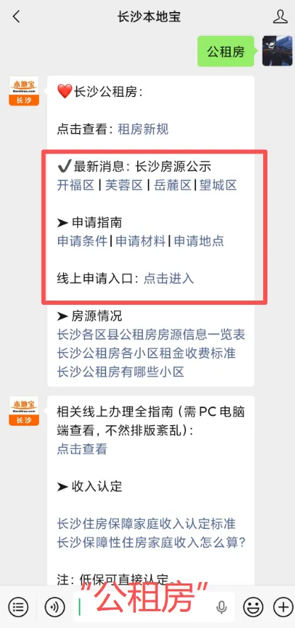 在【长沙本地宝】公众号对话框发送关键词: