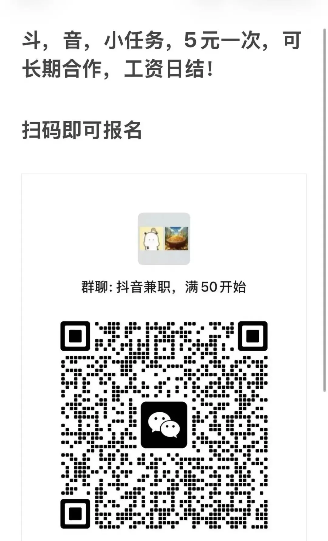 薪资待遇:完工即结,每人100元,包婚宴餐食