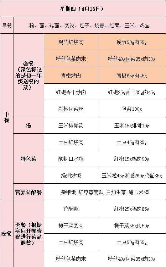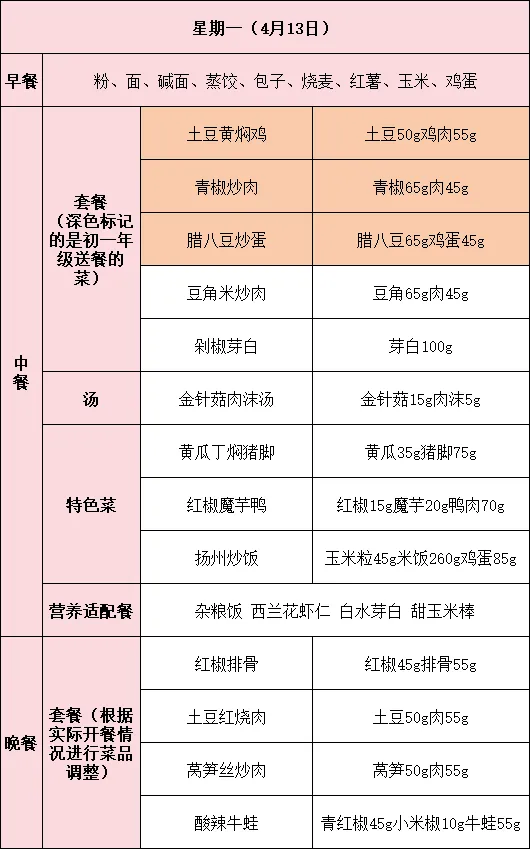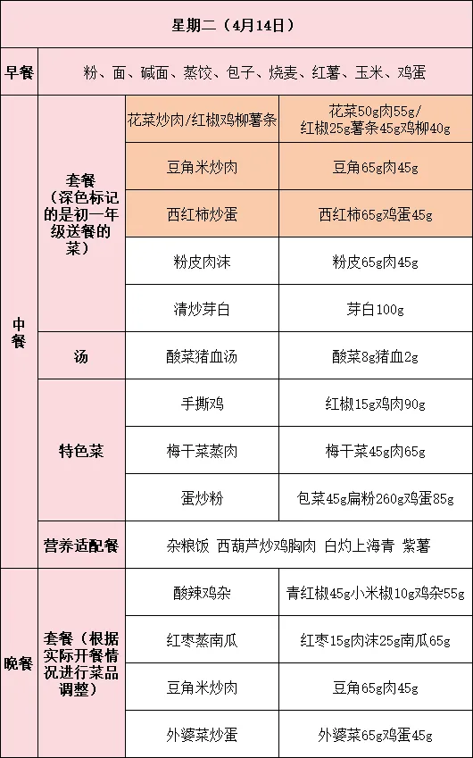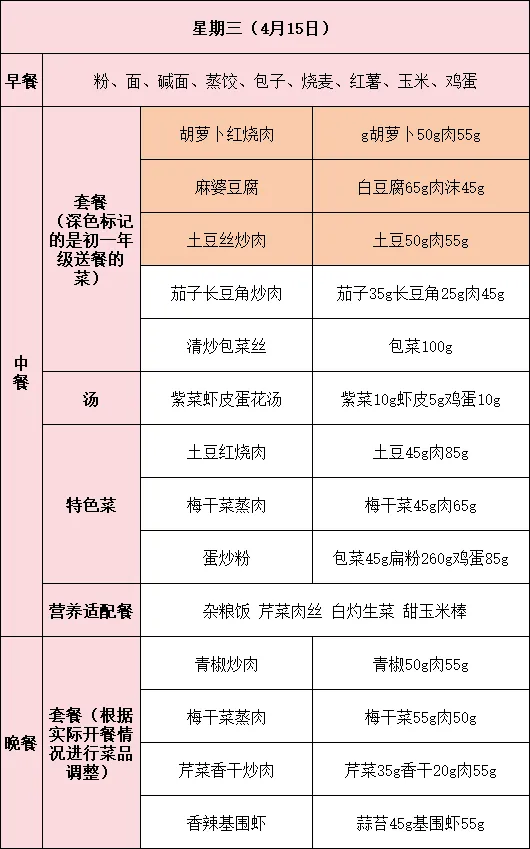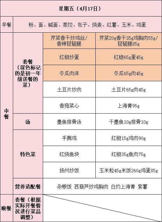 如有特殊情况,菜谱也会根据实际情况进行及时调整。