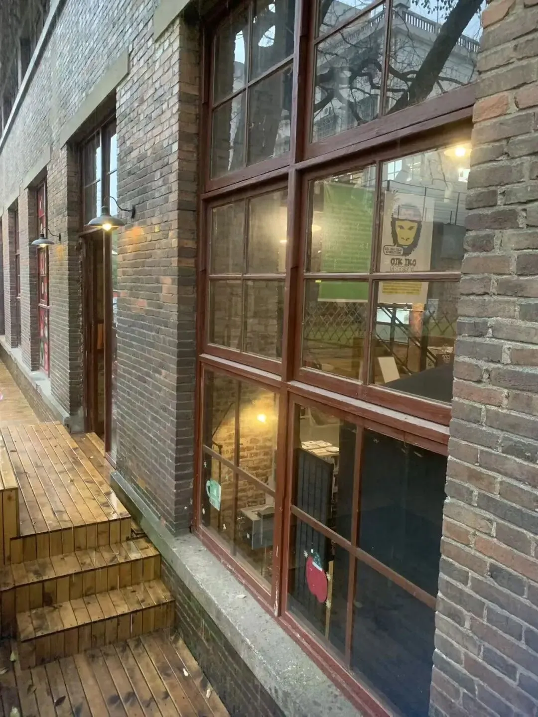 被雨水冲刷得干净透亮的红砖墙面,透着复古的沉静;街角的咖啡屋飘出淡淡的香气,在雨雾里晕开柔和的光晕。