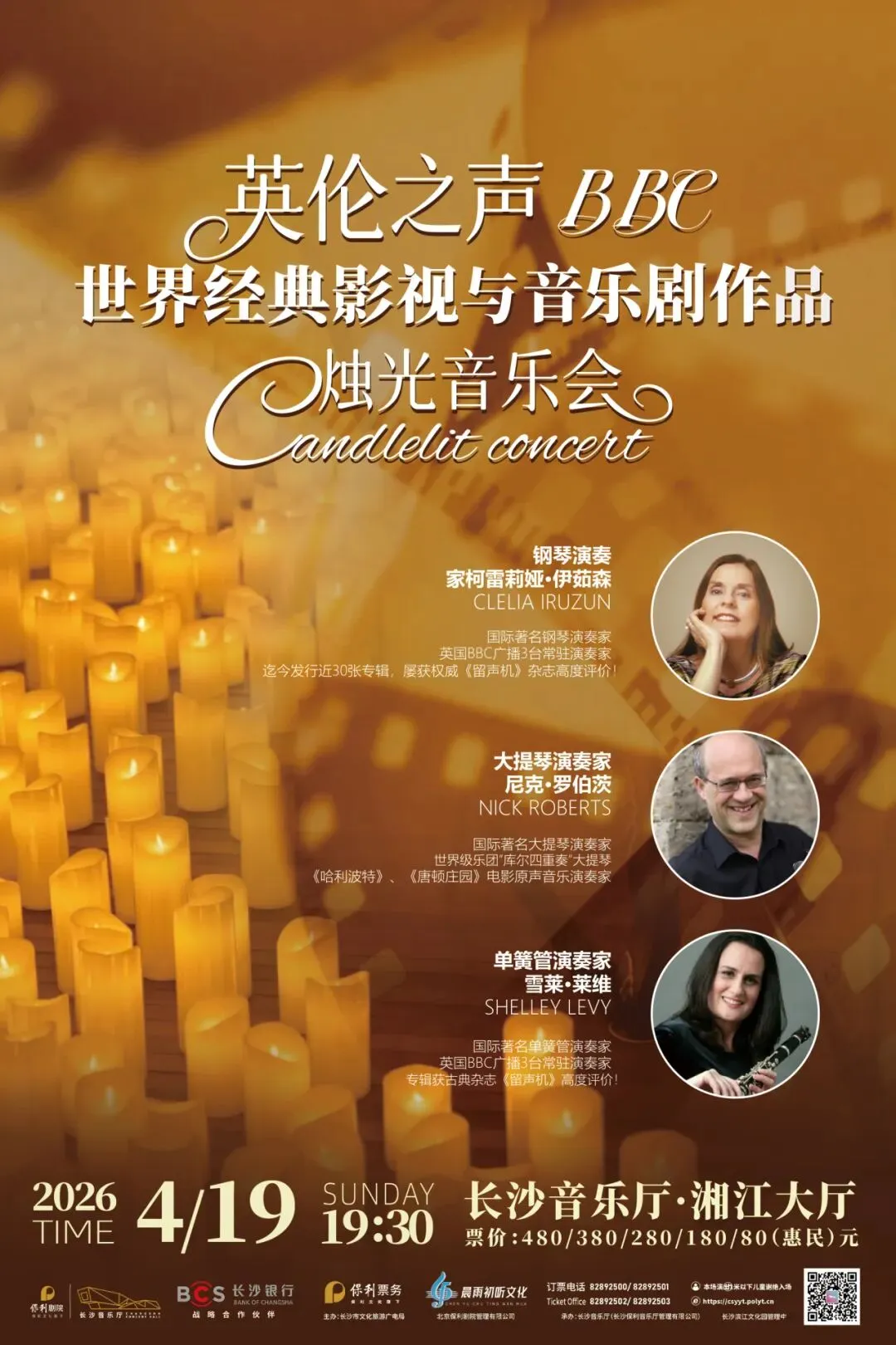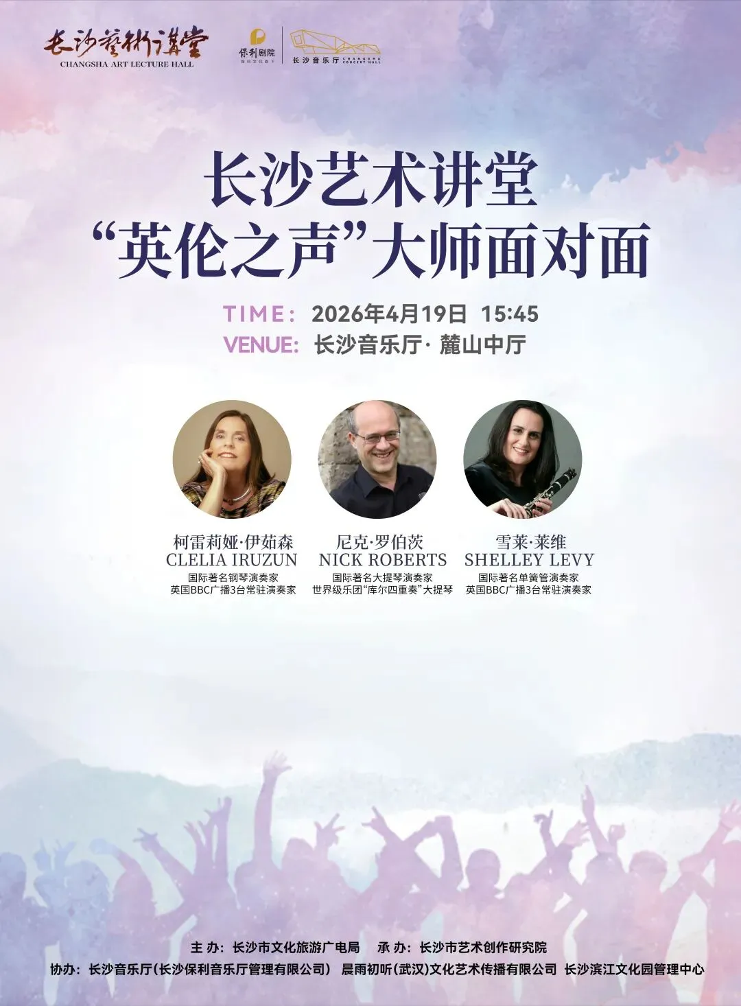 “英伦之声”BBC经典三重奏音乐会将于2026年4月19日在长沙音乐厅举行。此次来访的三位艺术家——钢琴家柯雷莉娅·伊茹森(Clelia Iruzun)、单簧管演奏家雪莱·莱维(Shelley Levy)以及大提琴演奏家尼克·罗伯茨(Nick Roberts)——均系英国BBC广播3台常客,且拥有丰富的影视配乐(如《哈利·波特》《唐顿庄园》)及世界级乐团演出经验。
