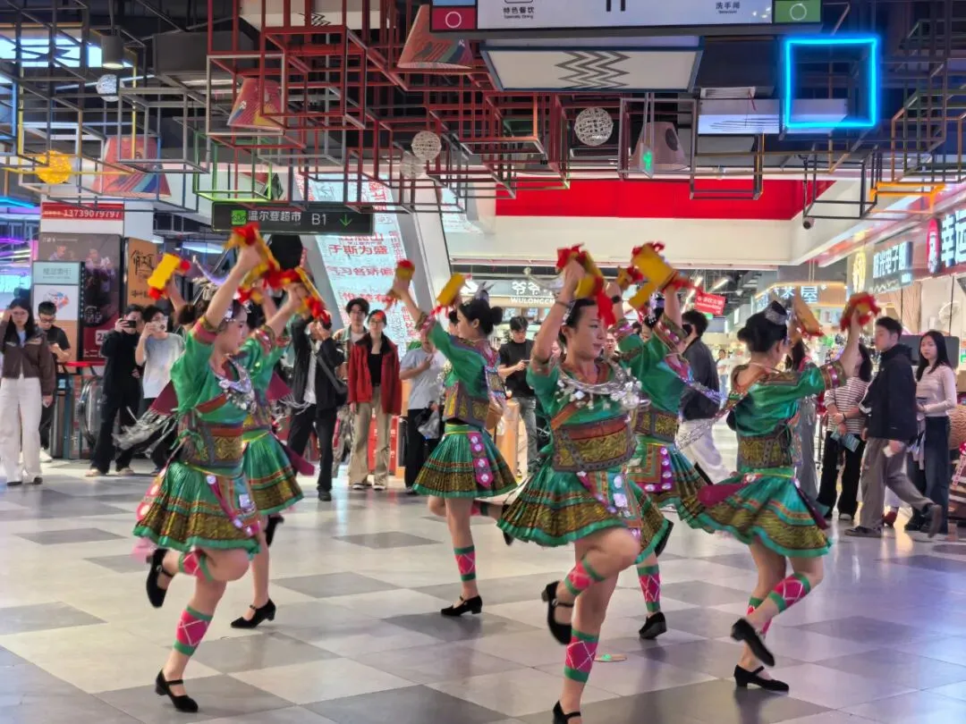 布依《八音坐唱》《浪哨》、彝族《阿妹戚托》、苗族《板凳舞》……非遗快闪接连走进校园与城市,将黔西南的山水人文与“贵州村舞”带到湘江之畔。