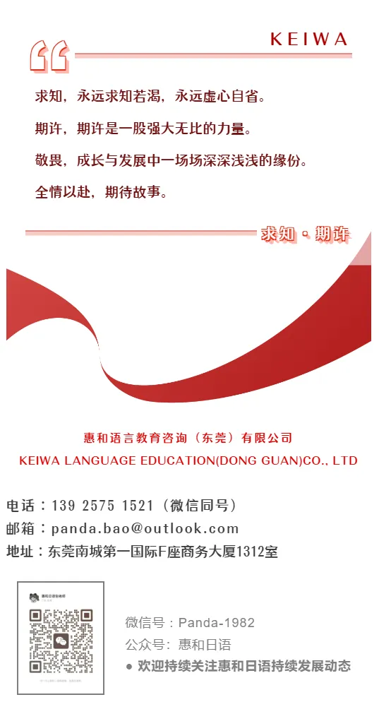 未来,惠和日语将继续吸纳前沿教学理念,整合优质教育资源,持续推进教学改革与创新,坚守教育初心,深耕教研内核,为广大学子提供更专业、更优质、更贴合需求的日语教学服务,助力每一位学子在日语学习的道路上稳步前行、逐梦远方。