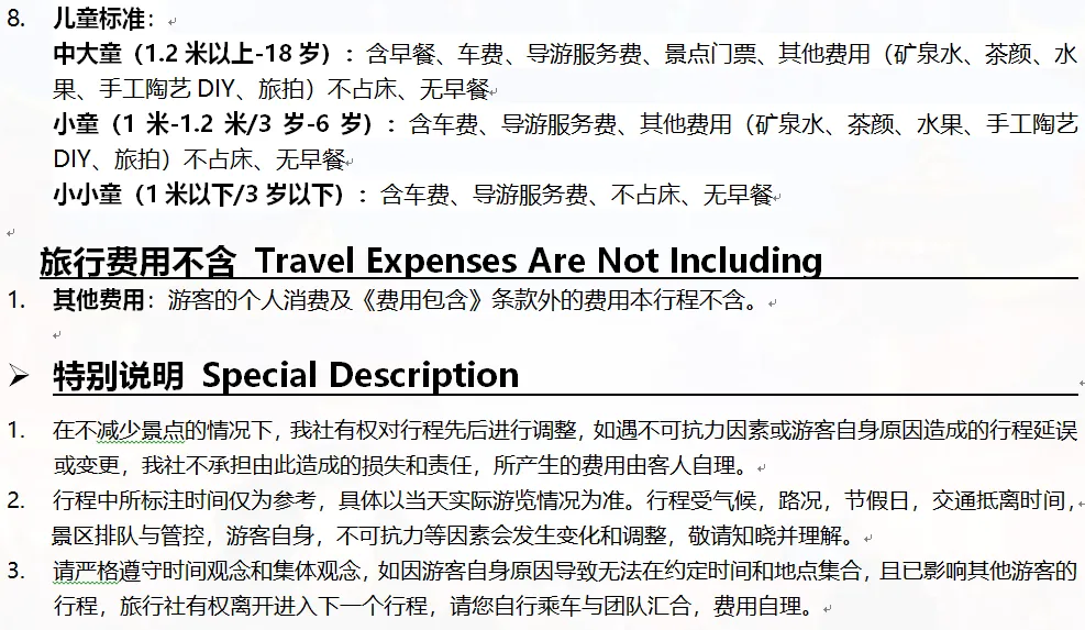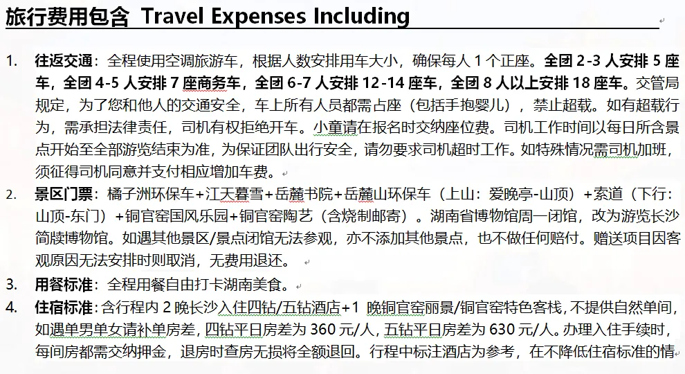 成人费用包含:24小时接送站+4天旅游车费+3晚住宿+3天导游服务+保险+景点门票