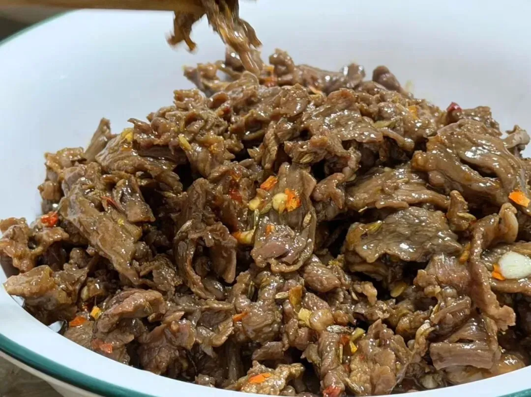 它好就好在不花哨。没有乱七八糟的配料抢戏,就是牛肉和孜然,简单,但越简单越考验功夫。牛肉切得很薄,看得出来肉是新鲜的,火候也控得好,吃起来特别嫩,而且没有那种一盘子油汪汪、吃两口就腻住的负担感。这种菜其实最见真章,看着普通,做好了反而最讨喜。