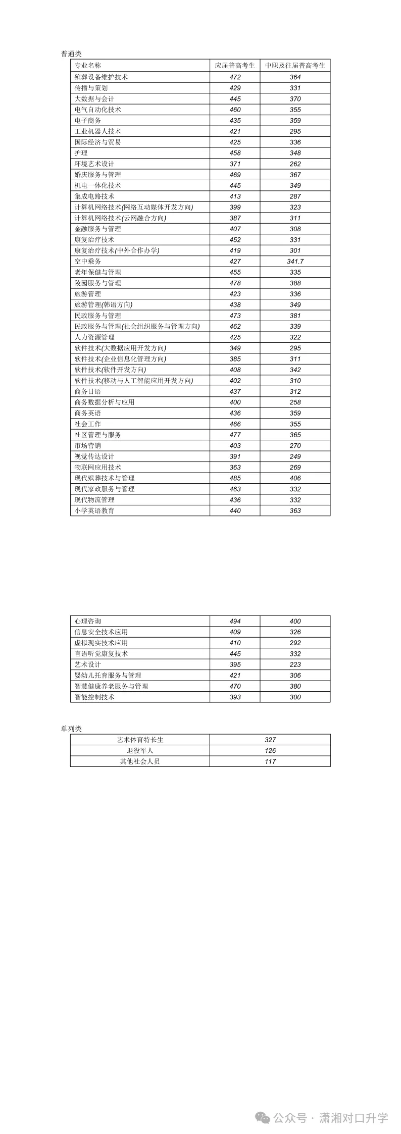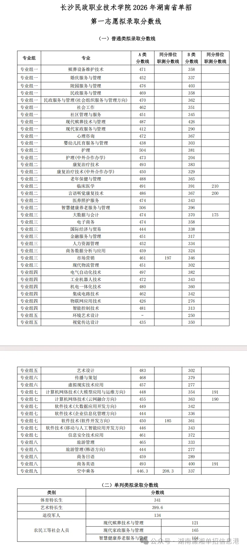十二、长沙民政职业技术学院对口高考招生录取