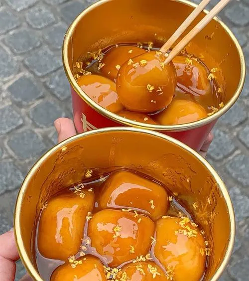 - 红糖加半碗水调开倒入锅里,转中火收汁,让每个粑粑都裹上浓稠的糖浆即可。
