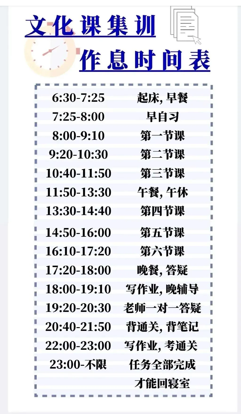 拥有宽敞明亮的教室和优美整洁的宿舍。校区内设有物品丰富的生活超市,为学生的学习和生活提供便利。同时,我们还注重营造浓郁的学习氛围,让学生在这里能够全身心投入学习,实现自我突破。 在教学管理方面,定一教育注重教学的系统性和科学性。我们采用小班授课模式,确保学生得到充分的关注和指导。同时,我们实行全日制全封闭式管理,为学生提供全方位的学习和生活保障。每晚进行全科通关考核及辅导答疑,确保学生的学习效果。 日结