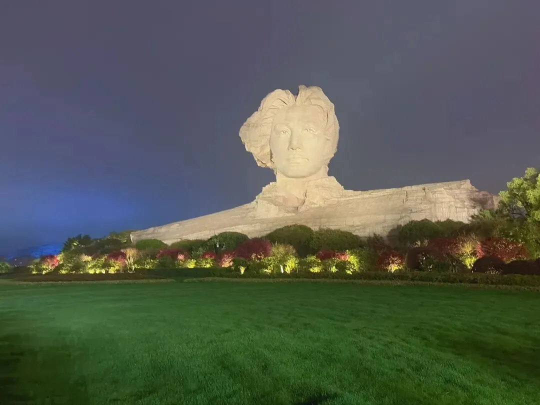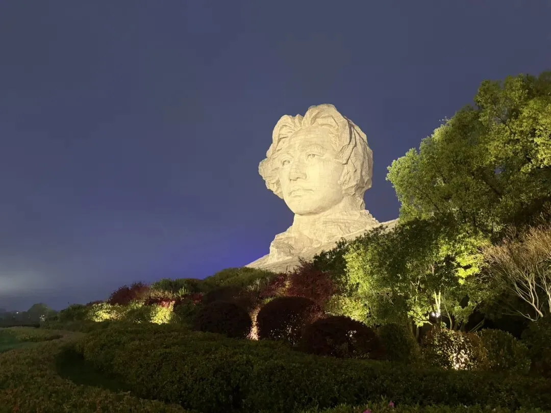 恰同学少年广场:这里无需上橘子洲,隔江与橘子洲毛泽东青年雕像完美同框的最佳机位。广场有醒目的 “恰同学少年” 红墙、复古铁轨艺术装置,可全景眺望湘江、橘子洲与岳麓山。