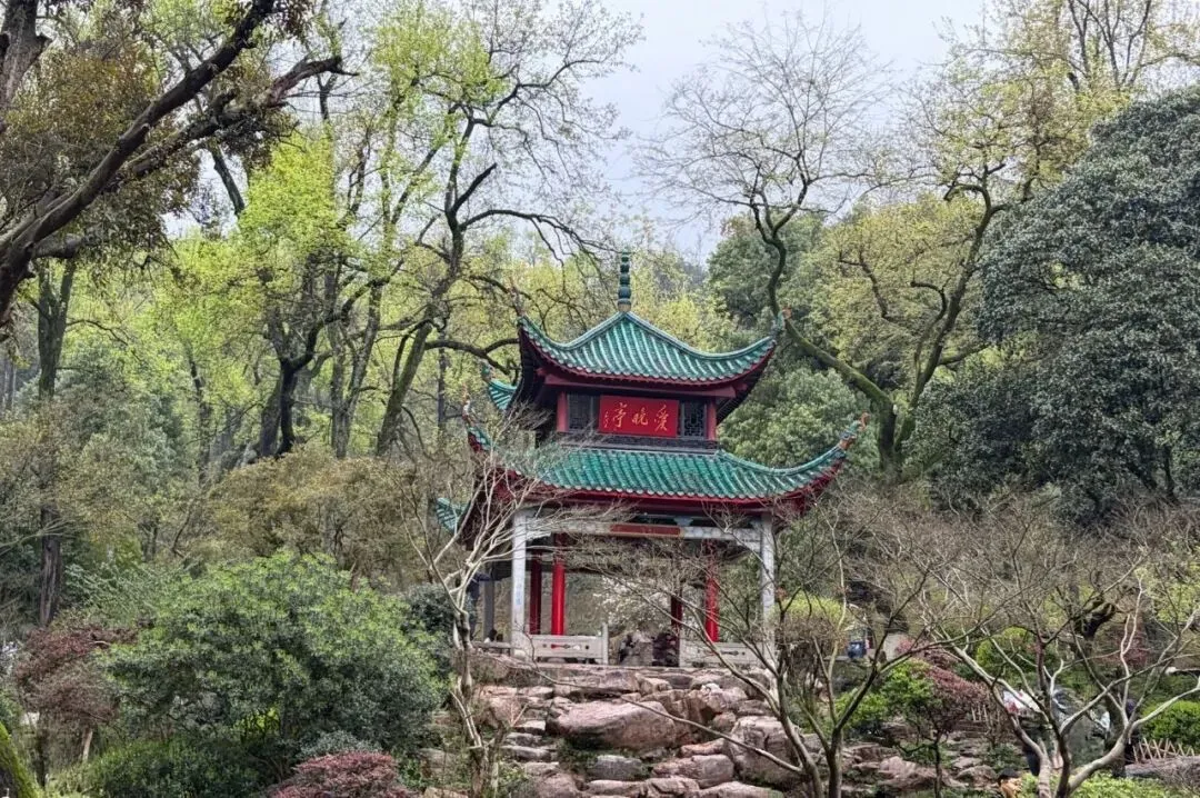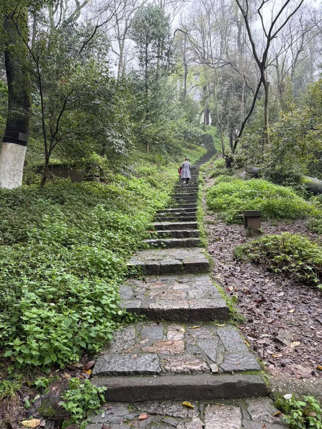 阴雨天爬岳麓山,石阶被雨水浸得发亮,青苔漫过石缝,山林里满是抽芽的新绿,空气里都是湿润的草木香。