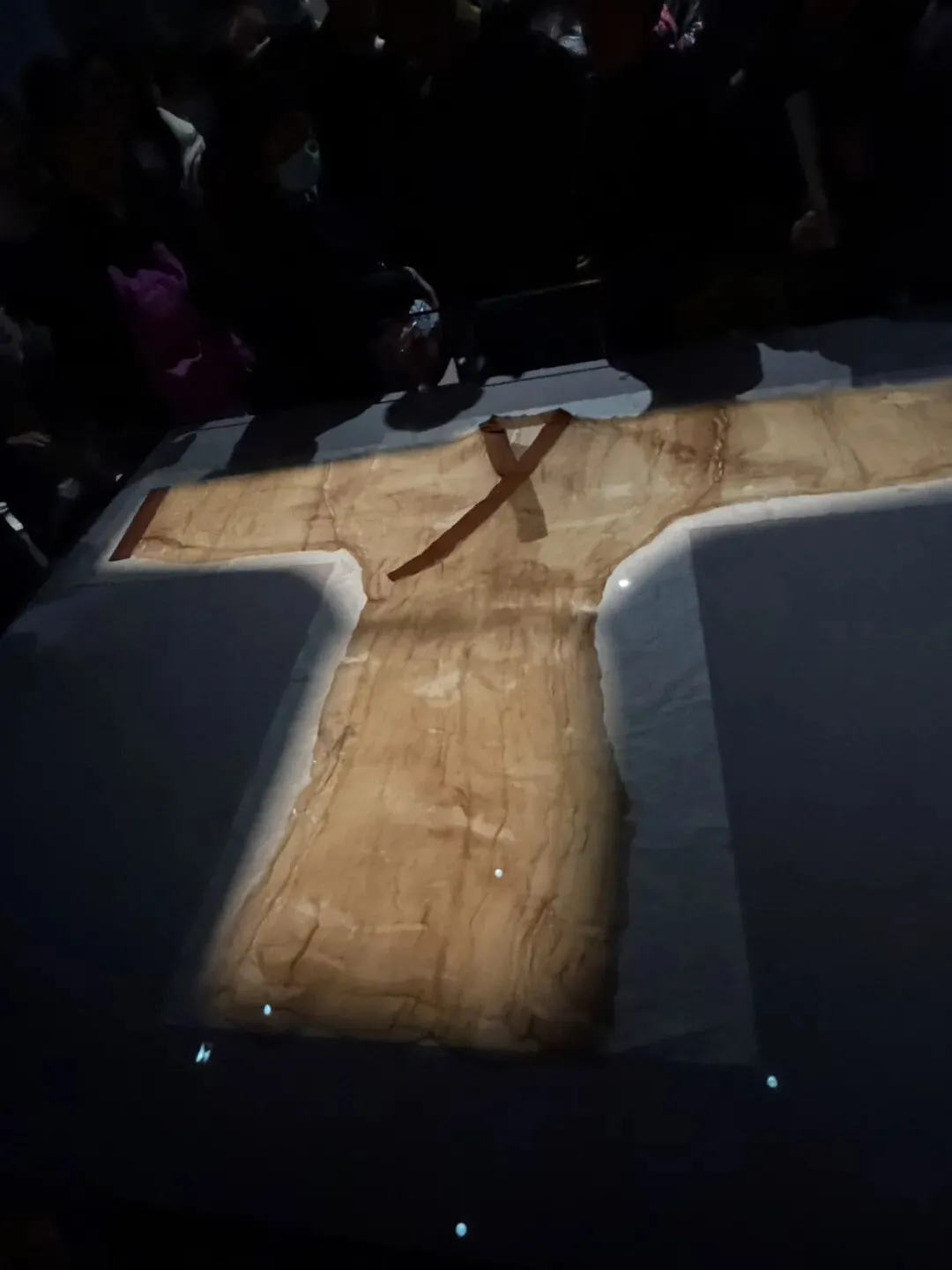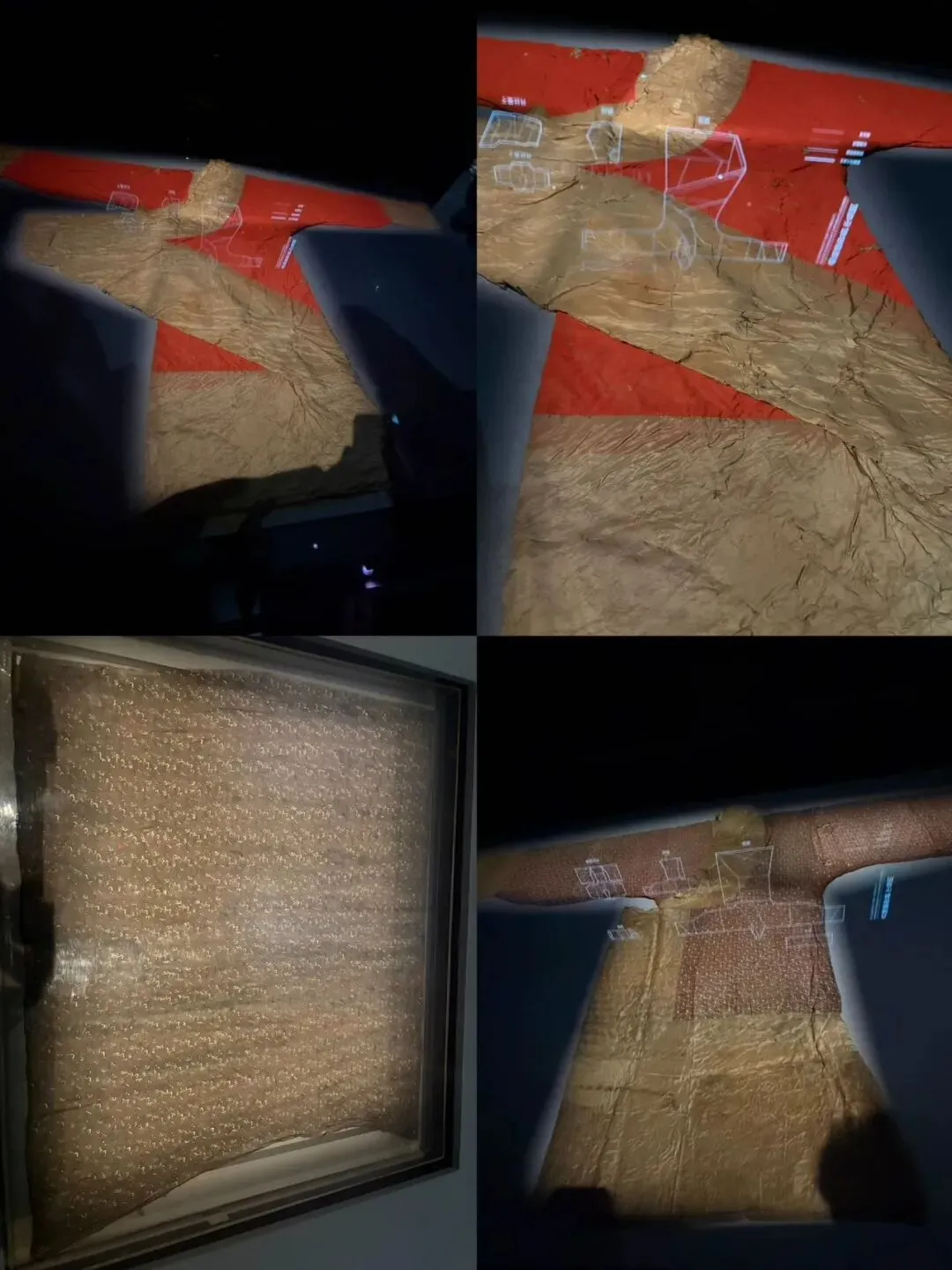 这件素纱襌衣,就是其中的代表。整件衣服身长 128 厘米,袖长 190 厘米,重量却仅有 49 克,还不到一两!它由极细的蚕丝编织而成,孔眼均匀,通透轻盈,完美展现了汉初丝织工艺的最高水平,是当之无愧的 “国宝级” 文物。
