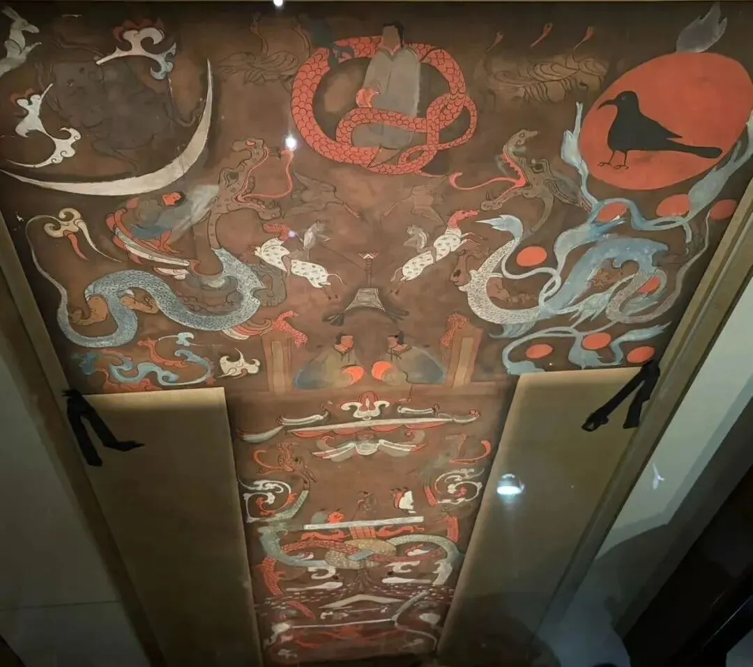 这幅覆盖在辛追棺椁上的帛画,是汉代人 “事死如事生” 宇宙观的极致体现,整幅画从上到下分为三层:天界、人间和地下。