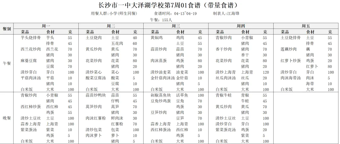 健康成长,“食”刻相伴|长沙市一中大泽湖学校第七周营养食谱
