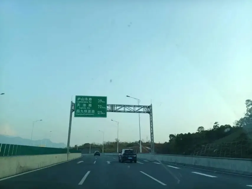 后转入大广高速,到了修水服务区,下车休整了一下后继续走大广高速,后很快转入永武高速。路牌上竟然有宣传牌立在中间绿化带:此生必驾永武高速。在庐山西海景区下高速后沿S406继续前行,距离湖口还有约120公里,两小时车程,预计6:30到达。