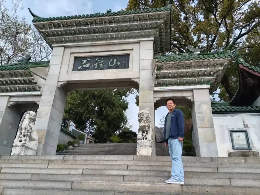 一进景区大门,就看到了苏轼雕像,站在他面前,读中学时候语文老师要求背诵的《石钟山记》,竟然冥想了半天才能想起其中一句:"事不目见耳闻,而臆断其有无,可乎?"听说这位于石钟山山门附近的石钟亭,亭内中央矗立刻有“石钟”二字的巨石,可用提供的小石块敲击,发出类似钟鸣的声音 。我连续拿了几块大小不一的石块敲了好一会,没有听到类似钟鸣声。不过,从这石钟山地貌结构和地理位置来看,如果景区容许,自己胆子够大,在月夜乘船至绝壁之下,听风声呼啸,江水汹涌在石缝间来回激荡,肯定会听到奇特的声音。但这“千古奇音第一山”的声音,能真正听闻的有几人?来到高崖之巅的清浊亭,亭柱上对联:“江湖两色,石钟千年”。站在亭中凭栏而望,长江水与鄱阳湖水在此交汇,远处隐隐约约能看见一条水波线,这线将水面清晰地分成了清浊两种颜色,而后继续奔腾,向东流去。