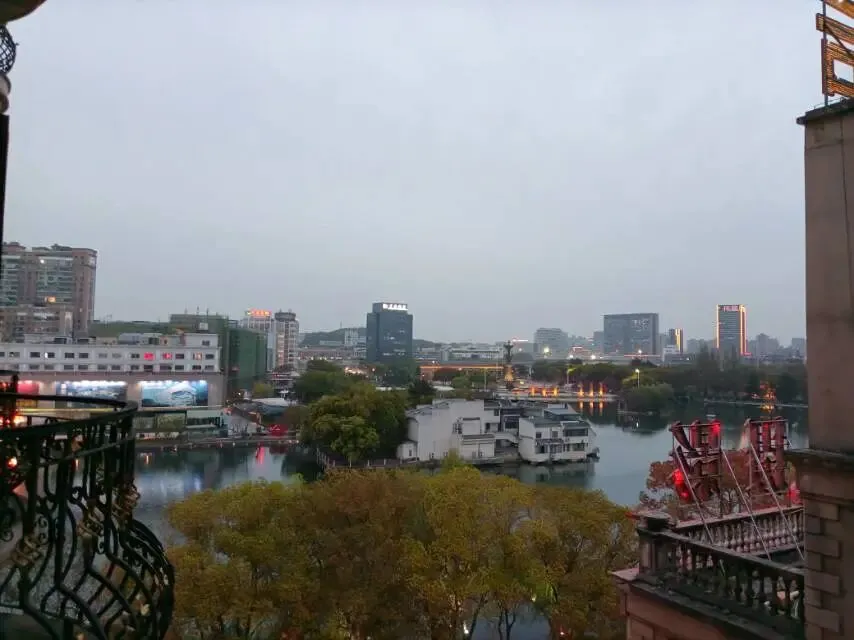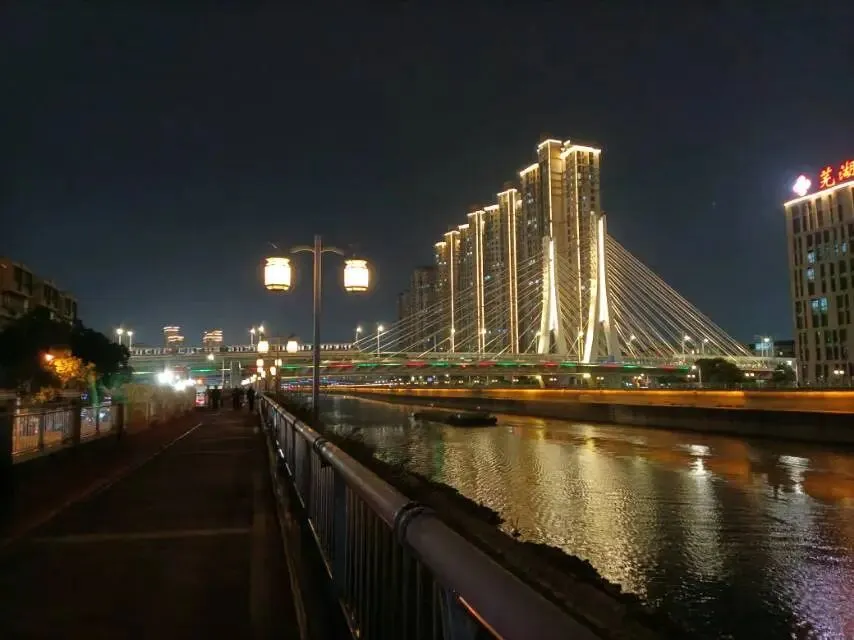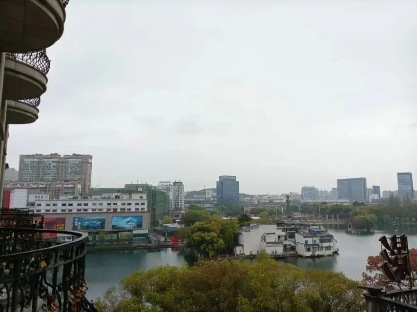 在服务区饭饱休息好了后,继续沿安东高速前行,我几次暗示Carl下高速,他置之不理,从安东高速转沪渝高速一路疾驰,我生气了,埋怨错过预计此生必驾的318线,他才不情愿地让我导航出高速,于是我搜索了最近出口:殷家汇为了走这一段318线,临时搜索高速口,一不小心撞见了一座安徽池州千年古镇:殷家汇,地处池州市区西南28公里的秋浦河畔。历史上“汇当孔道,南接徽郡,西抵东流,北达安庆,四牡凰华,连骖回轸。” 自明、清时期,这里是土特产集散中心和水陆交通枢纽。千年古镇殷家汇的商贾兴盛,有古诗为证:“商船泊岸如鳞次,昼夜人流似海喧。”有着“日有千人作揖,夜有万盏明灯”的美誉。在殷汇镇出发,沿G236行驶,两边田野金灿灿油菜花在车窗外闪过,心旷神怡。不久如愿走上了G318,风景更是美不胜收。相比从川进藏的G318沿途风景,感觉仅仅少了远处的雪山冷峻,但多了一份江南婉约。不一样的此生必驾318风景!不过,我们还是错过了我出发前攻略上提到的G318池州至殷汇段的“最美公路”,著名的 “皖南川藏线”。如果可以,我真想从上海市黄浦区的人民广场一直自驾至西藏日喀则市聂拉木县樟木镇的中尼友谊桥,全长仅 5476公里。我多次走318进藏,起点都是成都宽窄巷,终点主要是拉萨市。只有一次因为走阿里大环线经过318线终点中尼友谊桥。而G318的起点只是去上海玩时看到过,印象不怎么深刻。如果你如我一样有全程自驾318的想法,可以相约同行,实现梦想。走了很小的一段318线后,就转入了上聂线,风景也还不错,只是大货车比较多,行驶的流畅度肯定不如高速,于是Carl提议又要上他最爱的高速,于是我们又重回沪渝高速,后转宁芜高速,一路狂飙到芜湖古城花园湖景酒店。到达时候约傍晚6点,因为地处中山路步行街,车水马龙,热闹非凡,然而前面的镜湖平静如镜,酒店闹中取静,一半烟火一半桃源。入住的房间正对镜湖,在阳台上将镜湖美景尽收眼底。我们稍作休整后,出酒店步行夜游芜湖古城。此时华灯初上,才发现欧式华贵与徽派古典风格相结合的酒店外观挺有特色的。绕镜湖,转入沿江路,右边缓缓静流的青弋江,江风徐徐,一路上人很少,偶尔有三两个人在散步,一两个人在跑步,瞧那神态判断应该是本地人,因为清明节假还差两天才到,游客大军还没有启程,如我俩这样千里奔赴江南相聚途经的人应该很少,此时,这青弋江畔应该就是我们俩了吧。沿江畔走了约8分钟,来到了江中桥。灯光如昼,桥上长长的列车与小小的汽车在赛跑,桥下有大大的货轮在龟速,青弋江的夜到此热闹起来了。过了江中桥,就看到了右边不远处芜湖古城最著名的长虹门。登上长虹门,可以看到古城就是一片洼地,周围是现代化的高楼大厦。有时候看清了全貌其实并不是件很美好的事,我赶紧下得城门,在南正街走了几步。走在古城青石板上,欣赏两边各种古老的店铺门头,感觉瞬间穿越千年,恍如身在明清旧梦。因为决定了明天上午再来,就没有深度夜游了,在南正街走了一段然后折转回长虹门,临出城门时很落俗套地在古城招牌处打了个卡,然后沿着青青弋江,再绕镜湖回到了酒店。早起撩开房间通向阳台落地门帘探头看室外情况,烟雨蒙蒙,期待的阳光没有。
