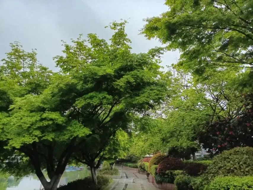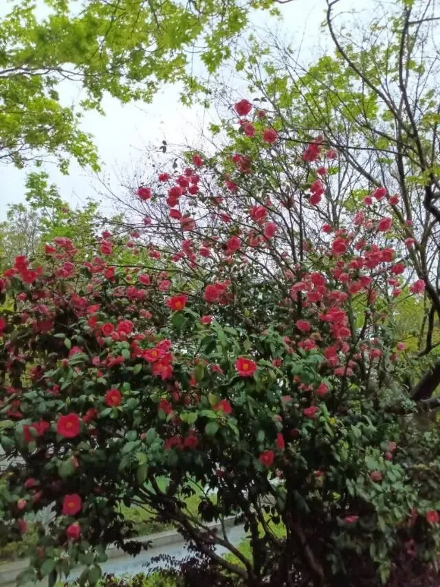 走出酒店就见镜湖如同一幅江南春雨图静静地展示在面前,湖面上升起一层薄薄的水雾。雨丝和水汽搅在一起,分不清哪是雨,哪是雾。湖畔的垂柳中偶尔冒出几支粉色的桃花,鲜红的茶花,在湖面雨雾里越发青翠欲滴,粉得醉人和红得夺目。空气里满是湿润的、清新的气息,还夹着泥土的芬芳和青草的甜味。深深地吸一口,那凉丝丝的空气一直沁到肺里,整个人都清爽了。