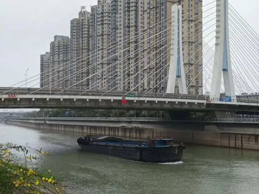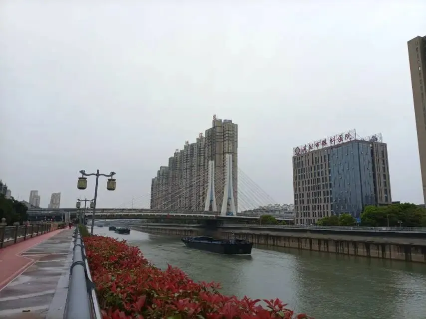 绕镜湖到沿河路,一路吹着青弋江的风。近中江桥时,忍不住驻足欣赏船在桥下过,火车与小车在桥上齐飞的奇观。感叹千年芜湖焕发的新活力。不一会又到了古城著名长虹门下,与昨晚夜游看到的不一样的美,在春日晨光里透着古朴清新。