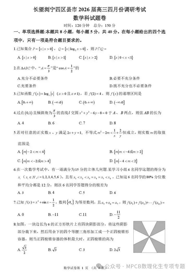 【补齐重发】【湖南卷】湖南省长沙市、望城、浏阳、宁乡(长望浏宁)四区县市2026届高三四月份调研考试(4.8-4.9) 全科试题卷+答案无页眉页脚页码无添加无私货无夹带无水印的纯净电子版部分内容展示【文末可下载全科打包版【文末可下载全科打包版(文未底部加黑加粗加大的蓝色字体"阅读原文"即为下载链接,点击即可进入下载链接】: