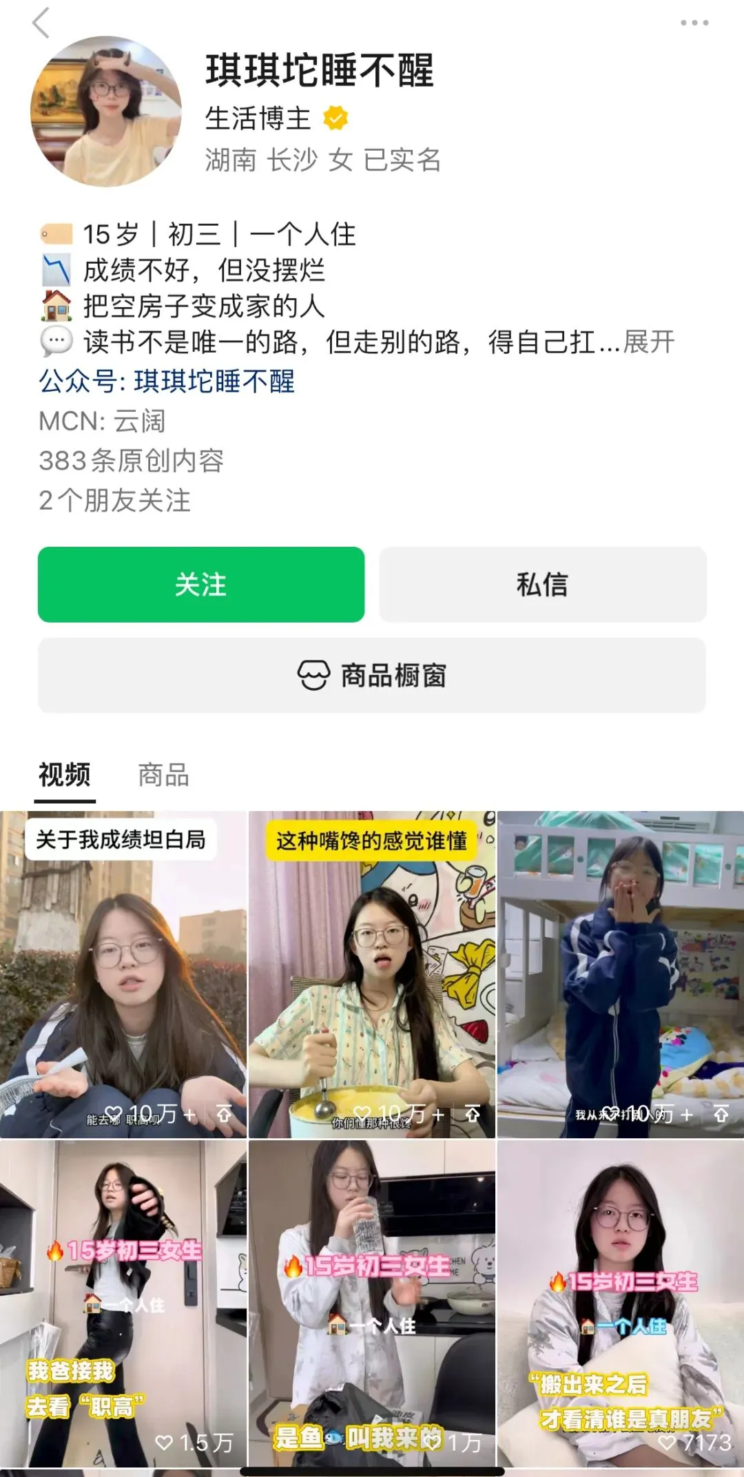 百万粉丝博主是“学渣”,15岁长沙女孩想寻找成长另一种答案