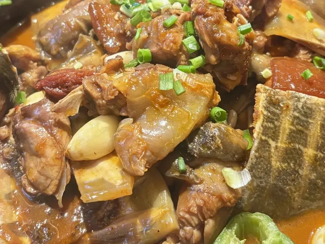 选用鲜活生态甲鱼,现杀现炒、拒绝冻货,搭配土鸡或五花肉,大火生炒、小火慢焖,汤汁浓稠金黄、胶质爆棚。