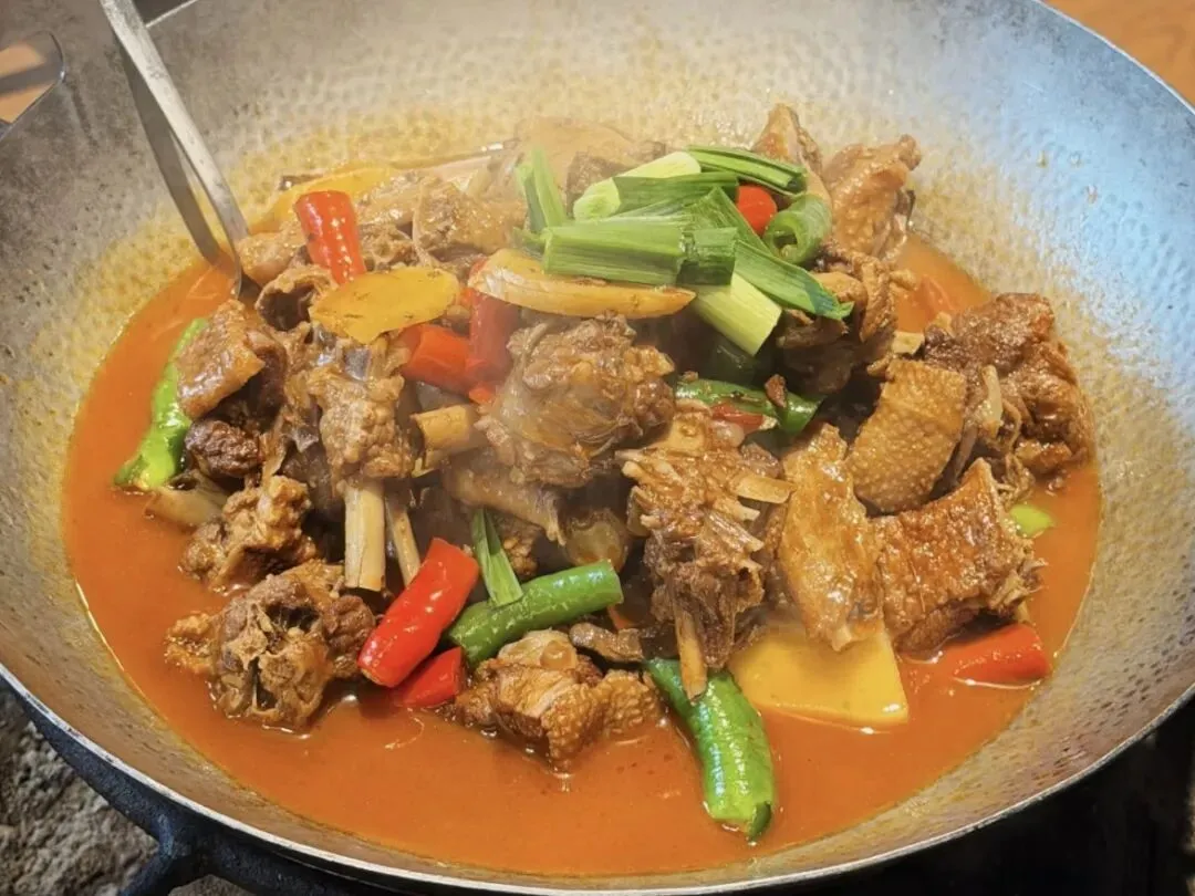 选用麻阳散养土鹅,肉质紧实、鲜香无腥,秘制酱料、慢火焖煮,鹅肉香软入味、咸香带辣。