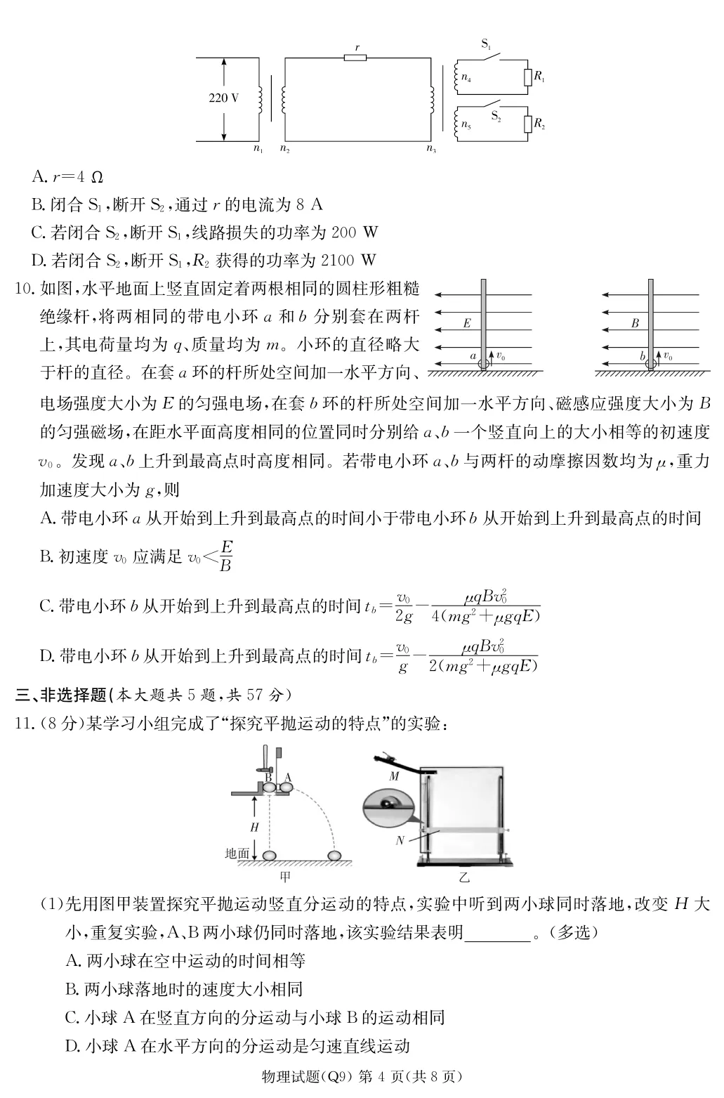 【0412】湖南省长沙市一中2026届高三月考试卷(九)