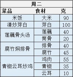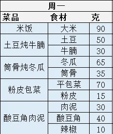 第七周营养食谱
