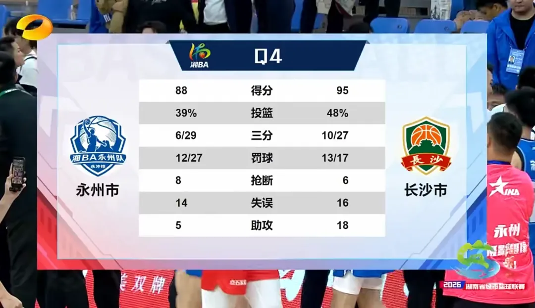 终场哨响长沙队以95-88战胜永州队,豪取四连胜。