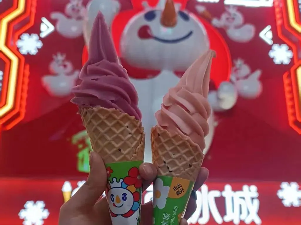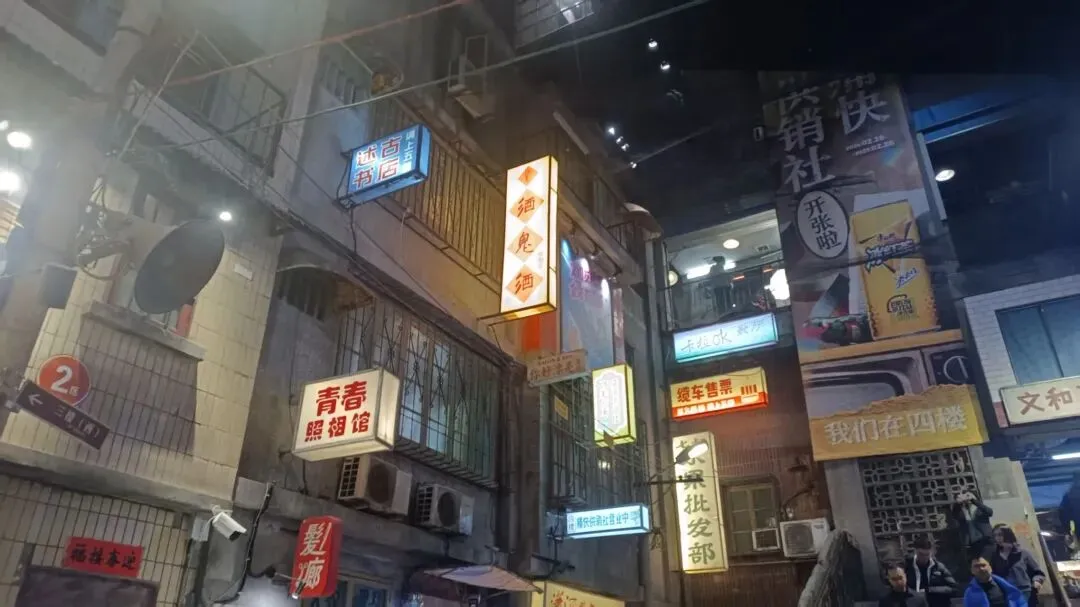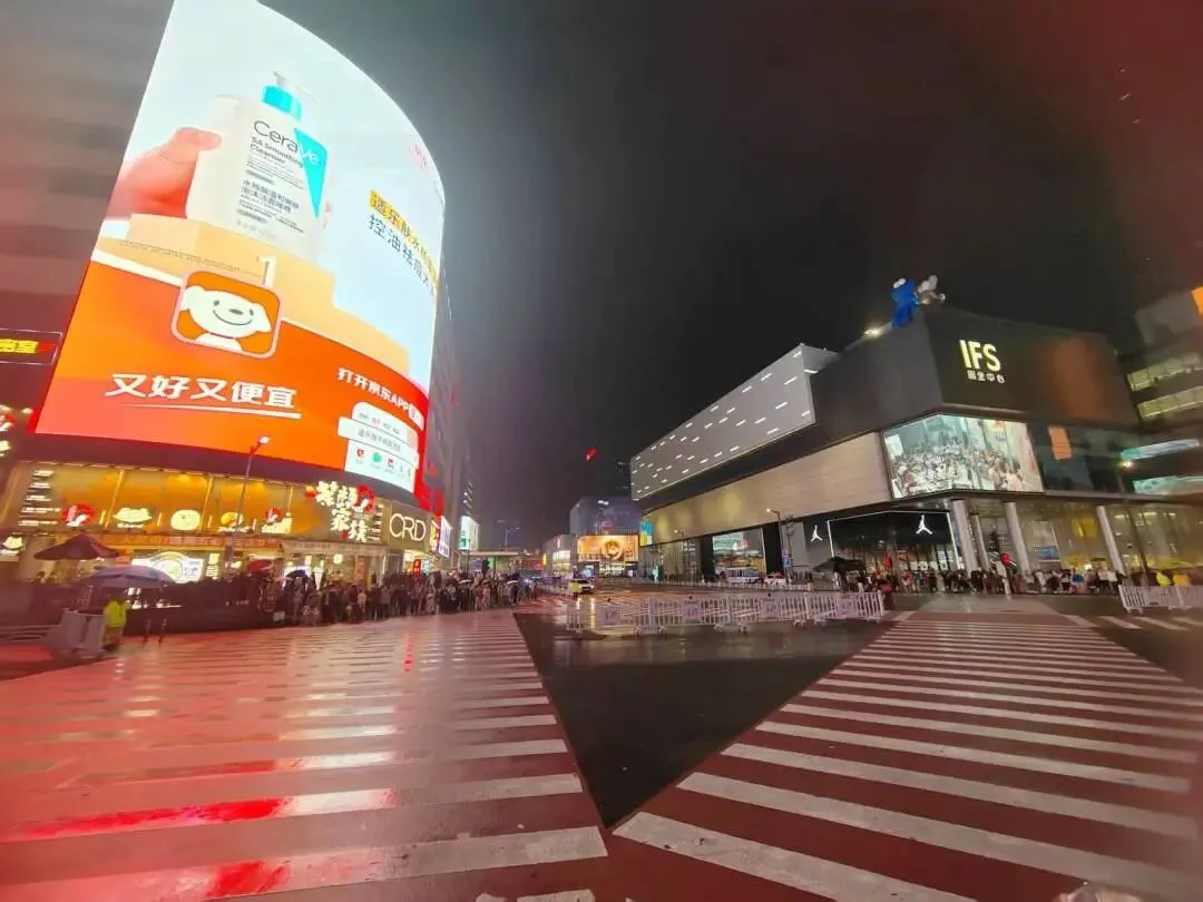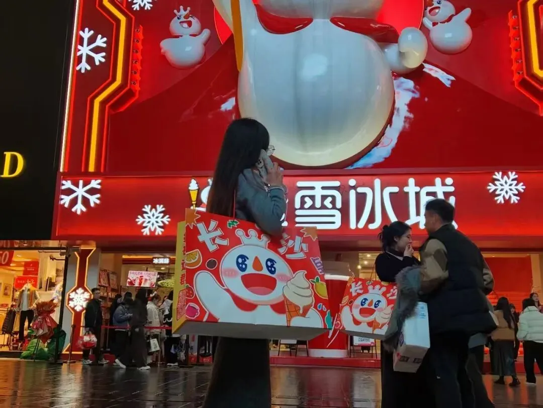 晚上超热闹,蜜雪冰城旗舰店也在这里