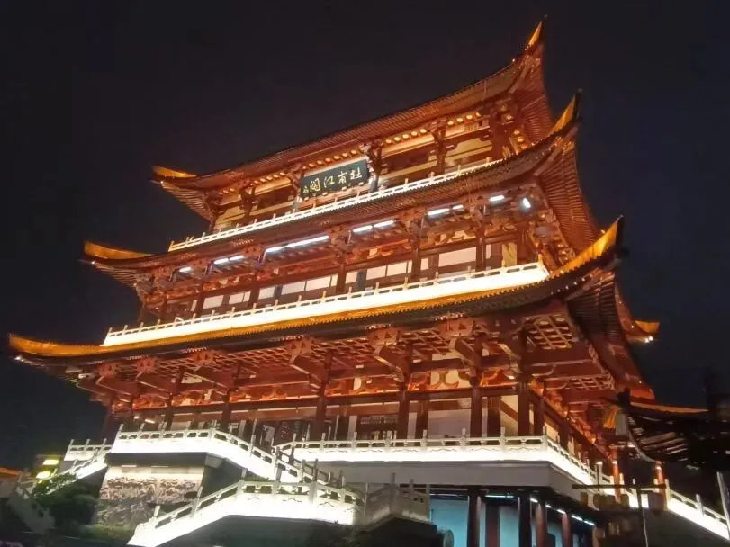 晚上亮灯超好看,还可以在江边city walk散步,可以看到万达的灯光秀,还有,江边也有乐队唱歌,好听!