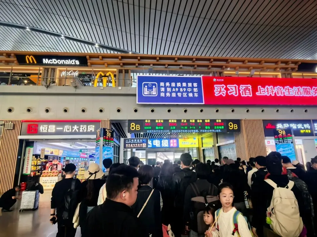 一进候车室,看到里面的旅客基本上穿的两件,还有不少人只穿了一件。于是找个位子坐下来,也把毛衣脱了。站里换乘还有段时间,就到老地方茶颜悦色店来杯奶茶先。不一会列车要到了,准备检票出发。