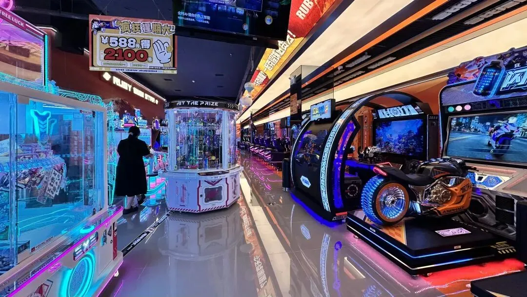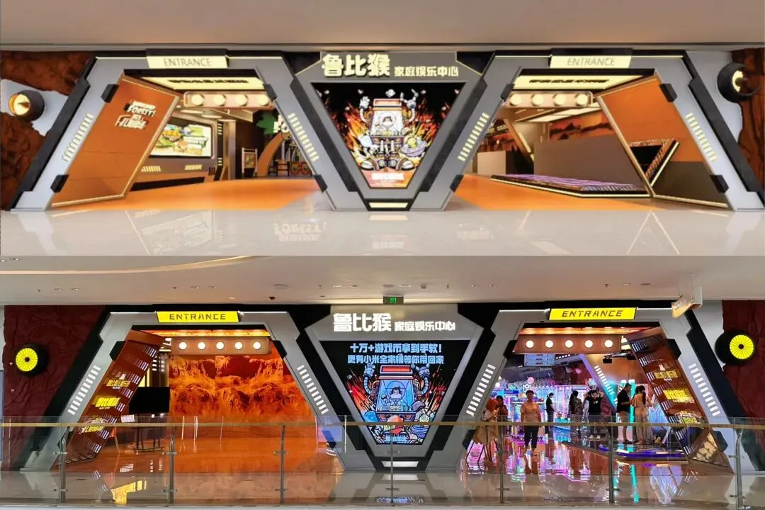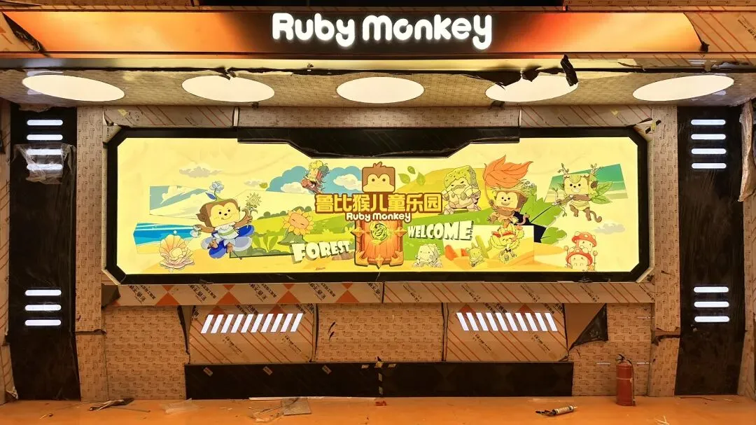 娃娃机、摩托赛车等游乐设备的专属灯箱,与整体空间风格统一,让玩家在游玩中随时捕捉品牌信息;儿童乐园区域的卡通IP墙,更是将品牌形象与亲子场景完美结合,趣味性拉满。