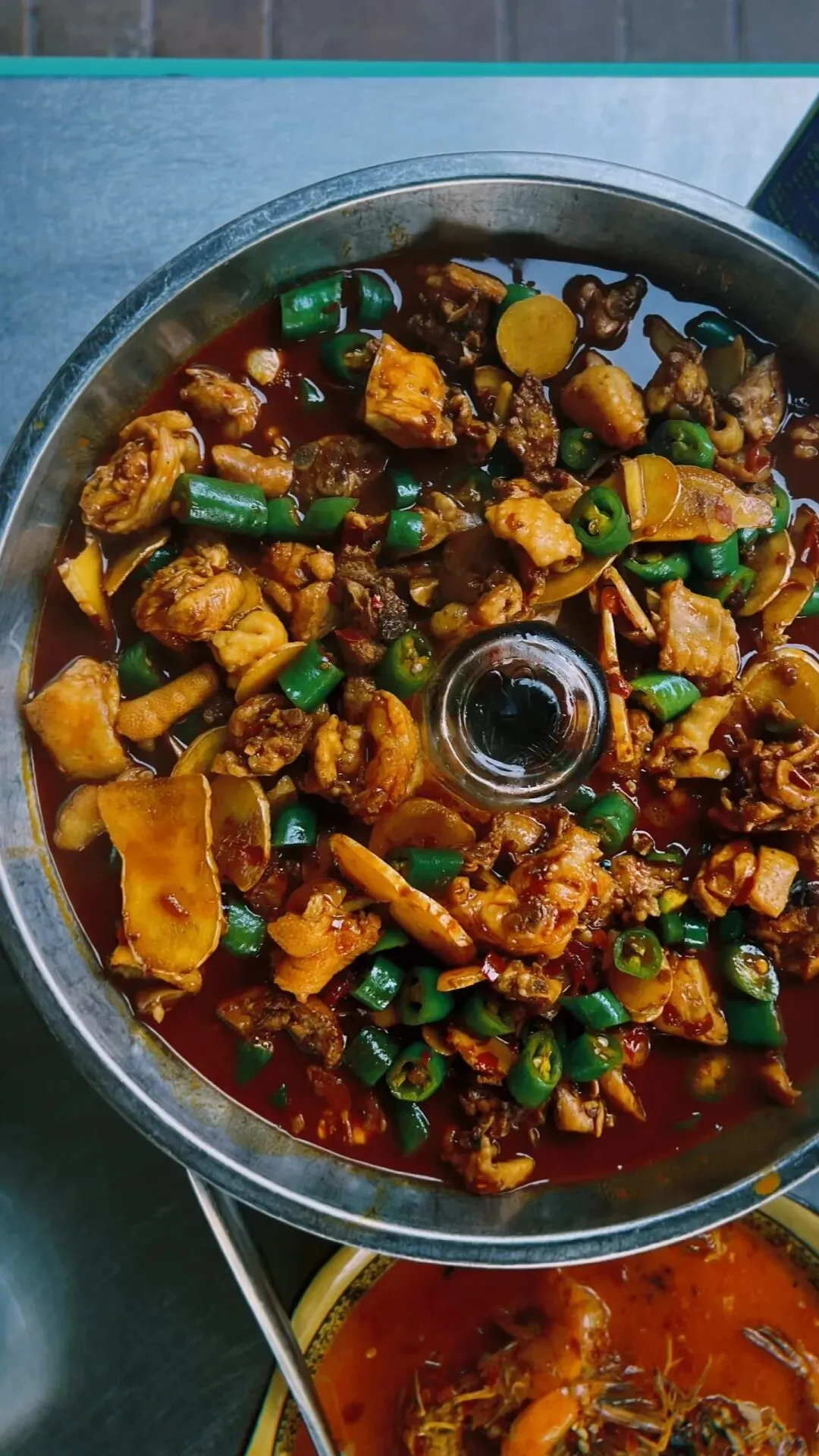 鸡肉嫩到脱骨,鲜辣中带着丝丝酒香,越煮越入味。
