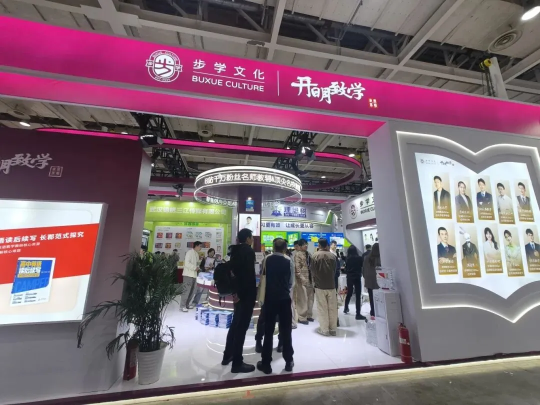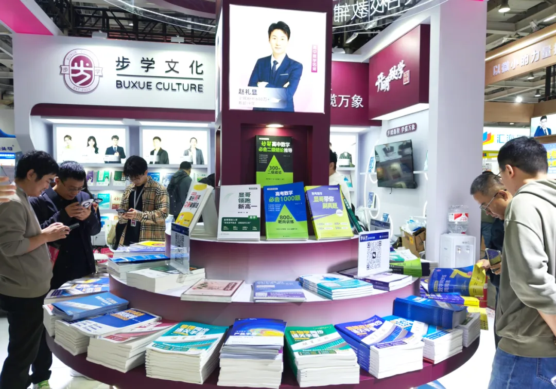 展会现场,步学集团线上IP名师类图书,吸引了众多目光,汇聚赵礼显(数学)、李政(化学)、夏梦迪(物理)、龙坚(英语)、英语兔、李林(生物)、刘勖雯(政史地)、林琬晴(物理)、贞贞老师(语文)、亮亮老师(数学)等行业大咖,除了打造全国极具影响力的线上课程平台外,名师多年教学生涯的结晶——IP名师系列图书,也走向了线下更多的家长、学员。