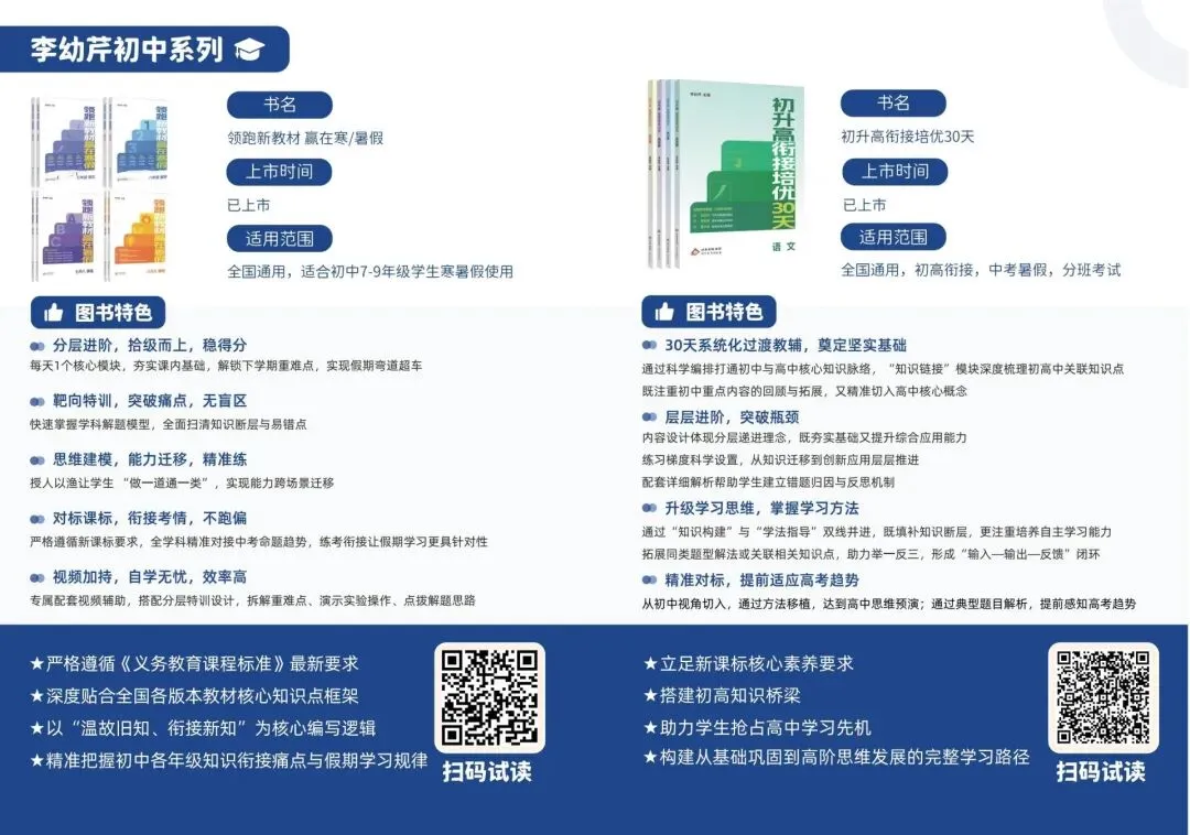 北京步学教育集团作为国内大型头部教育科技集团,依托自有名师、名校资源及区位优势,结合多年顶流教研团队经验积累,赋能图书,同时通过AI技术实现学情精准定位,靶向补弱。为学生搭建“独家名师课程+名师IP图书+AI学习管理”的闭环,通过名师名校资源和科技赋能,为更多学子提供高效学习体验,助力学子圆梦!