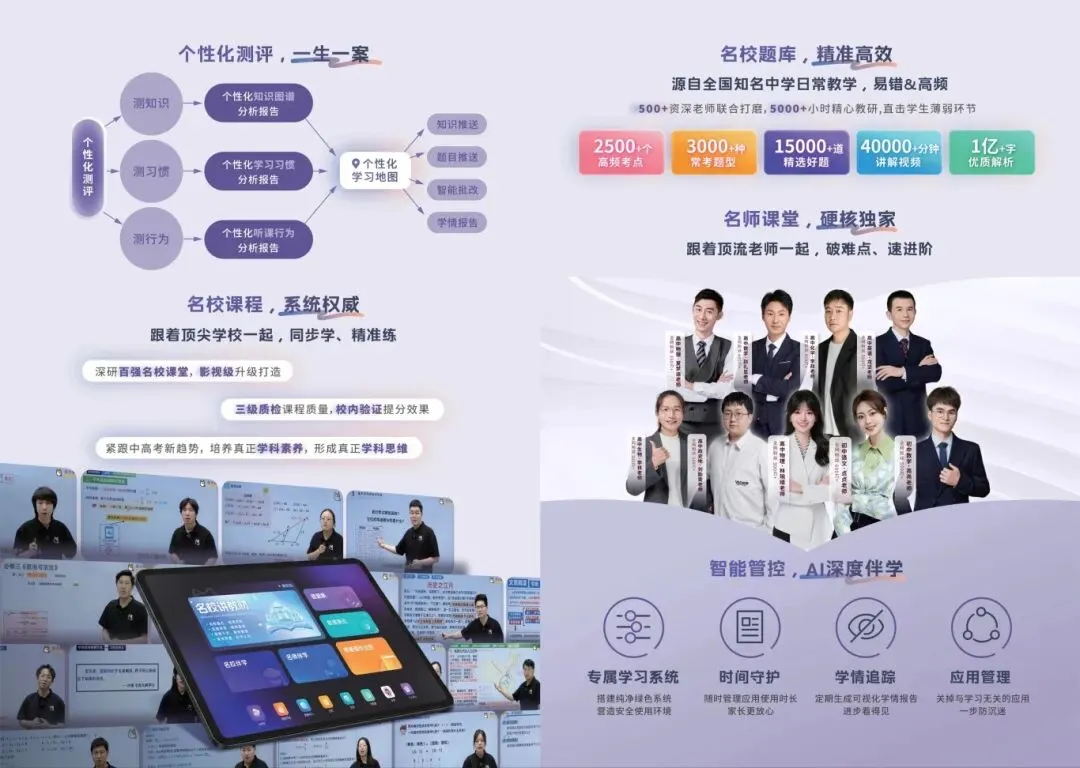除传统图书外,步学集团数智AI学习机——“级步猫”备受关注。级步猫的内容集名师和名校于一身。【名校课程】提供了系统权威的同步内容,无论您在哪里都可以跟着顶尖名校一起学习;【名校题库】源自名校日常教学,汇集全国知名中学日常教学中的易错易混点,直击高频知识点,精准练习;【名师课堂】由顶流老师带领突破重难点,高效提分。