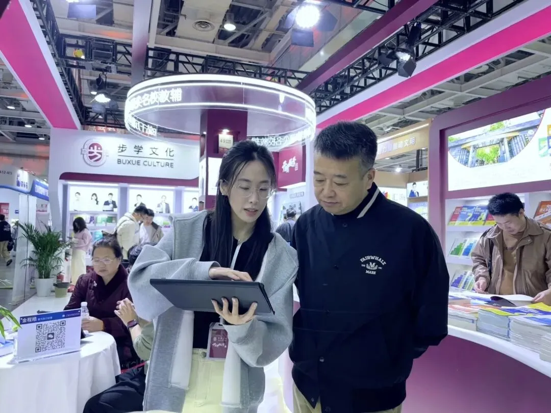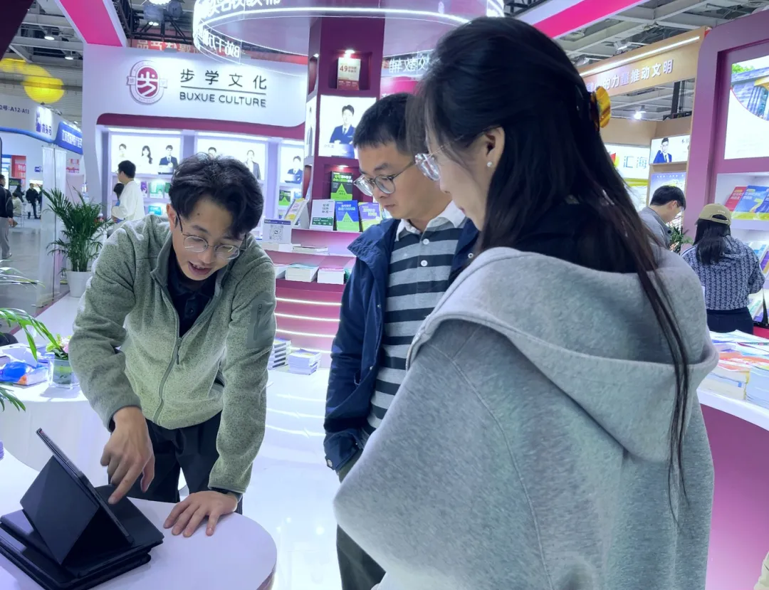本届书展,北京步学教育集团携两大类六十余种图书和数智AI学习机——“级步猫”亮相星城。步学集团不断探索教育教学的新方法、新理念、新渠道,IP名师系列图书、名校系列图书及数智新品级步猫学习机给观众带来深刻印象,并吸引大量观众前来咨询。