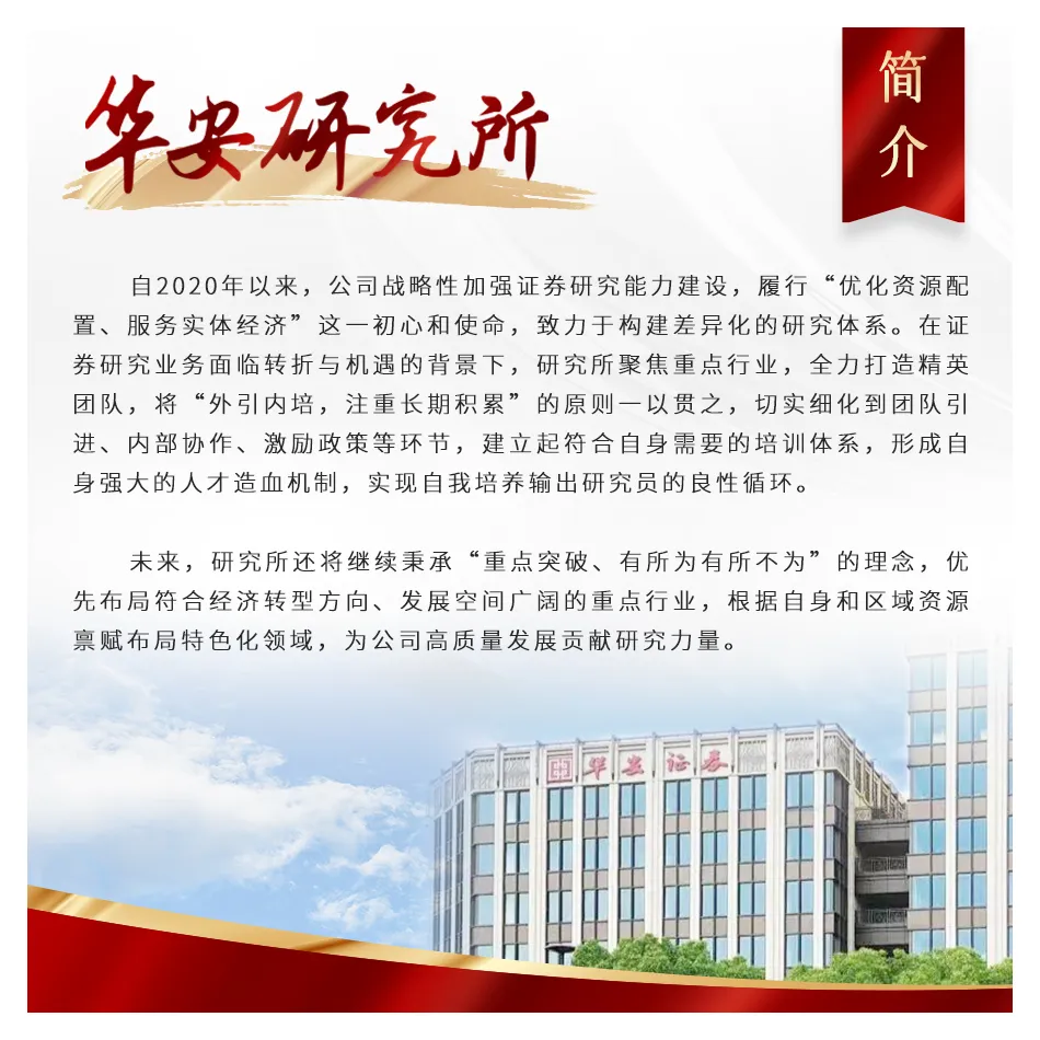 本资料由华安证券研究所汇编而成,仅供客户中的专业投资者参考。具体投资观点请以研究报告的完整内容为准,投研活动信息等请联系对口销售。为保证服务质量、控制投资风险,敬请阅知页末的特别提示和一般声明。感谢您给予的理解和配合。