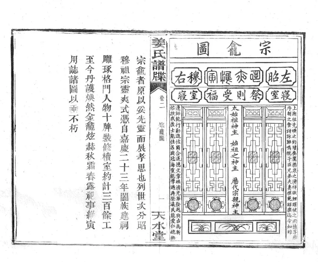 上溯祖先,璜之钓绩,奏鹰扬;泉之涌祥,徵鲤躍。被之同情,孚雁序;朝之会诗,詠鸡鸣。统子臣、兄弟、夫妻,模范昭垂,迄今如昨。