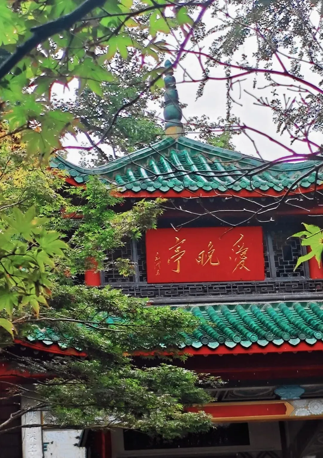 爱晚亭藏在岳麓山的浓荫里,我们去的时候,树木郁郁葱葱,空气里满是清新的草木气息。