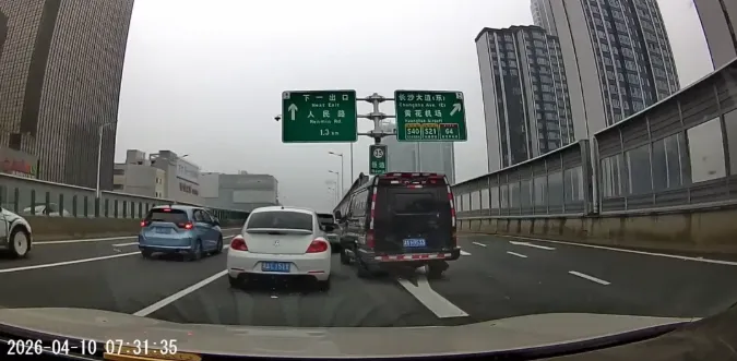近日,在湖南长沙市万家丽高架快速路上,一后车行车记录仪拍下惊险一幕:一辆黑色运钞车在变道时未被小车让行,强行加塞进入主路,差点撞上正常行驶的一辆小车。