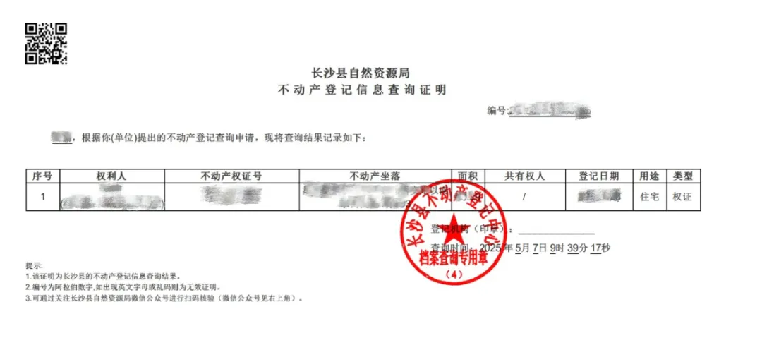 4、房产性质只能为住宅,提供不动产登记信息查验证明原件。(搜索“长沙县自然资源局”微信公众号,点击菜单栏“服务大厅”,选择“不动产”,进入后选择“有无房证明”通过实名注册和人脸认证后,即可查询。)