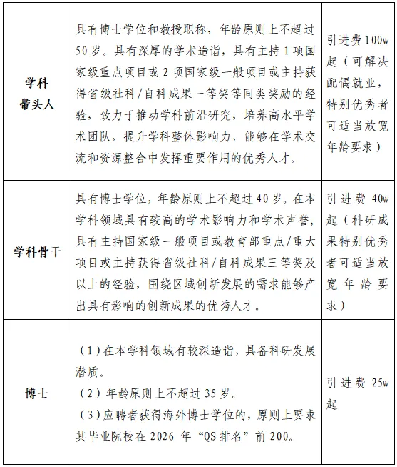 1.安置配偶:引进的学科带头人可解决配偶就业,科研成果特别优秀的学科骨干可协商解决配偶就业;