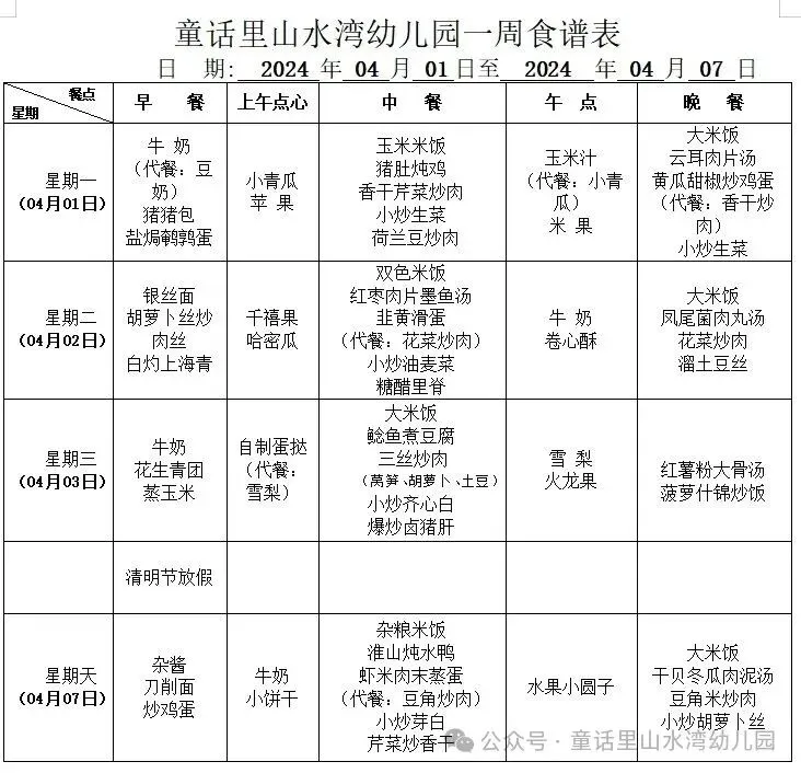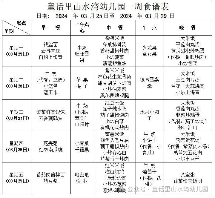 【营养美食】长沙县湘龙街道童话里山水湾幼儿园第五周食谱