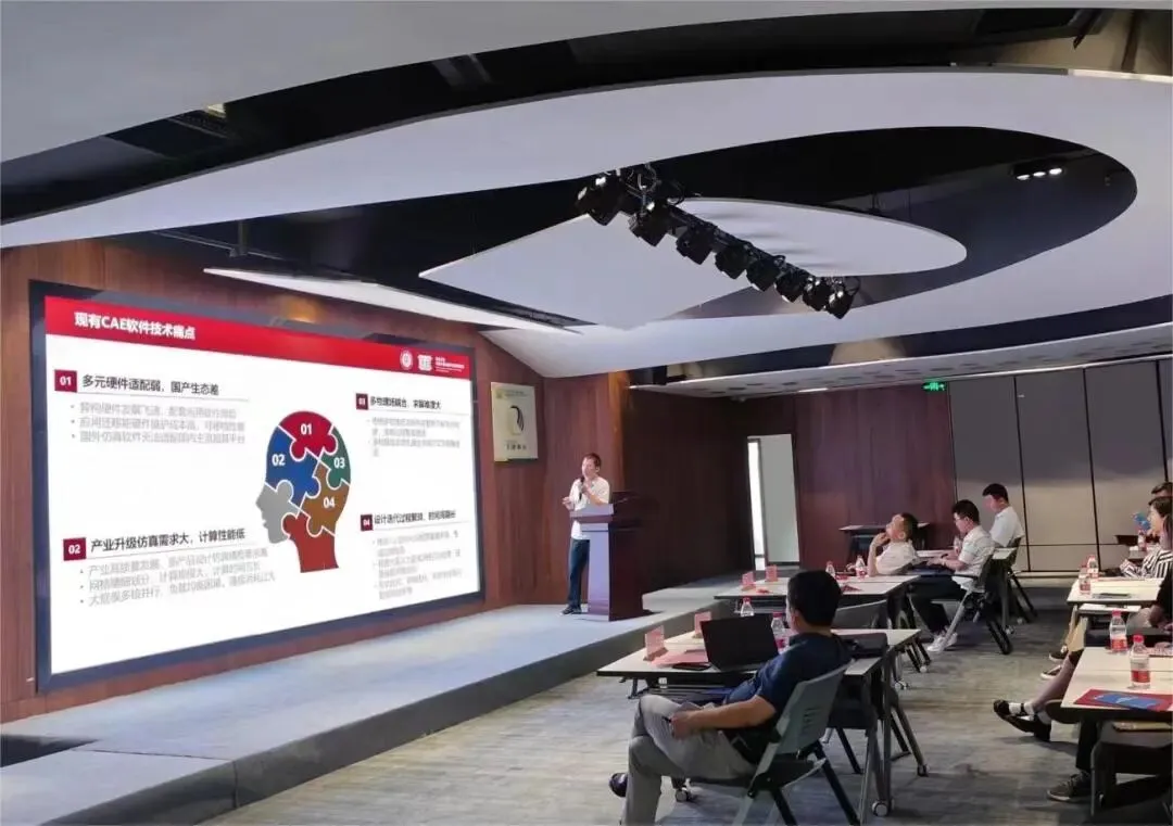会上,中科院博士后、北京大学长沙计算与数字经济研究院先进计算研究中心高级工程师李军博士做了题为《国产工业CAE仿真软件自主研发实践》的主旨演讲。他从CAE介绍、澎湃CAE计算引擎、实际案例应用以及生态合作四个方面阐述了跨平台高性能多物理仿真技术的发展及应用。